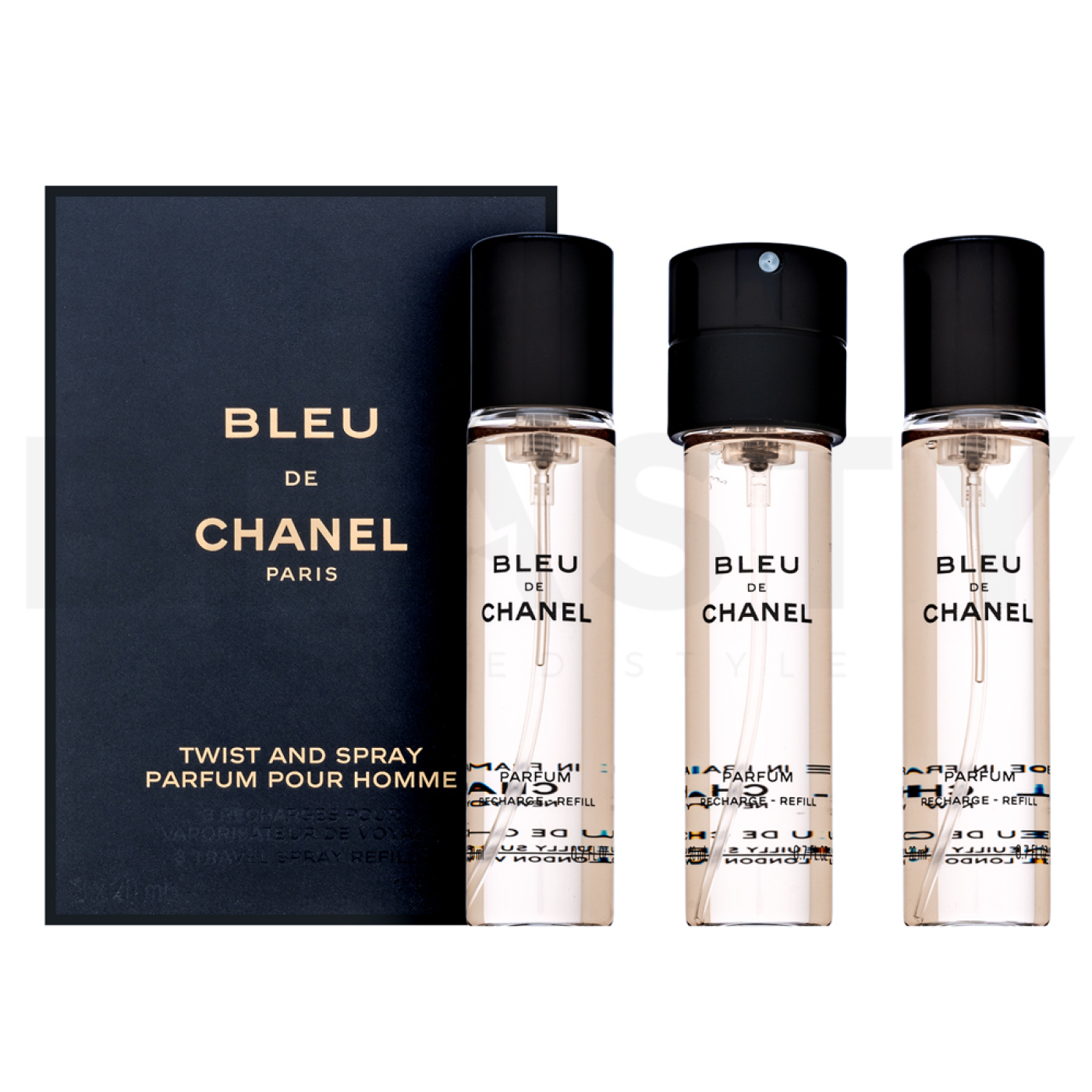 Chanel Bleu de Chanel Parfum je dostupný v praktickém refill balení o objemu 3 x 20 ml, což je ideální pro muže na cestách nebo jako elegantní doplněk do vaší sbírky.