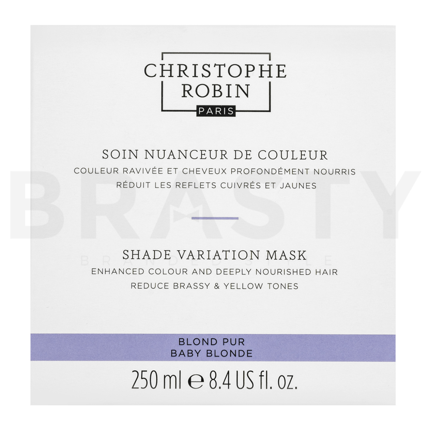 Christophe Robin Shade Variation Mask je vyživující maska speciálně navržená pro blond vlasy, které potřebují obnovit svou zářivost a vitalitu. Tato maska je ideální pro ženy, které chtějí udržet své barvené vlasy v perfektním stavu mezi návštěvami kadeřníka. Značka Christophe Robin je známá svou odborností v oblasti vlasové péče a její produkty jsou oblíbené po celém světě pro svou kvalitu a účinnost.
