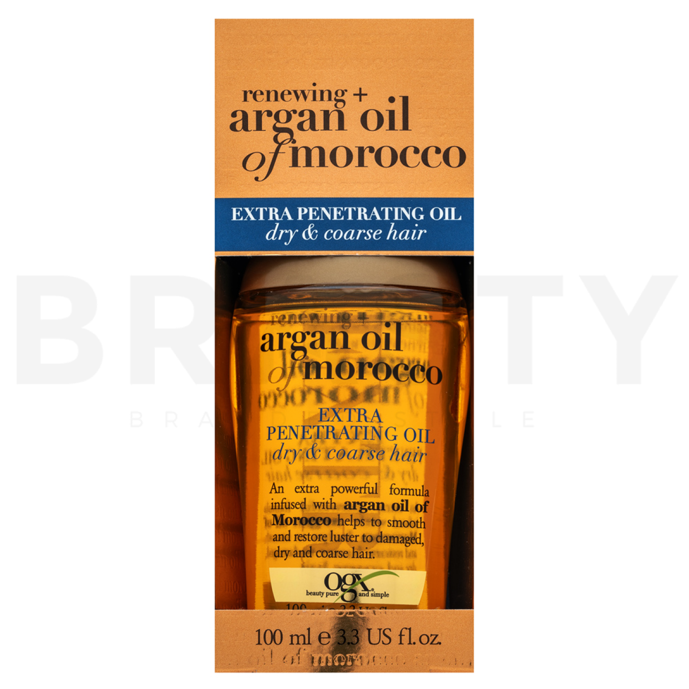 OGX Renewing + Argan Oil of Morocco Extra Penetrating Oil je luxusní vlasový olej, který přináší intenzivní péči a lesk vašim vlasům. Tento produkt je navržen speciálně pro ženy, které touží po zdravých a zářivých vlasech. Díky své unikátní formulaci s arganovým olejem z Maroka, je tento olej ideální volbou pro regeneraci a obnovu poškozených vlasů. OGX je značka známá svým závazkem k používání přírodních ingrediencí, které dodávají vlasům potřebnou výživu a vitalitu.