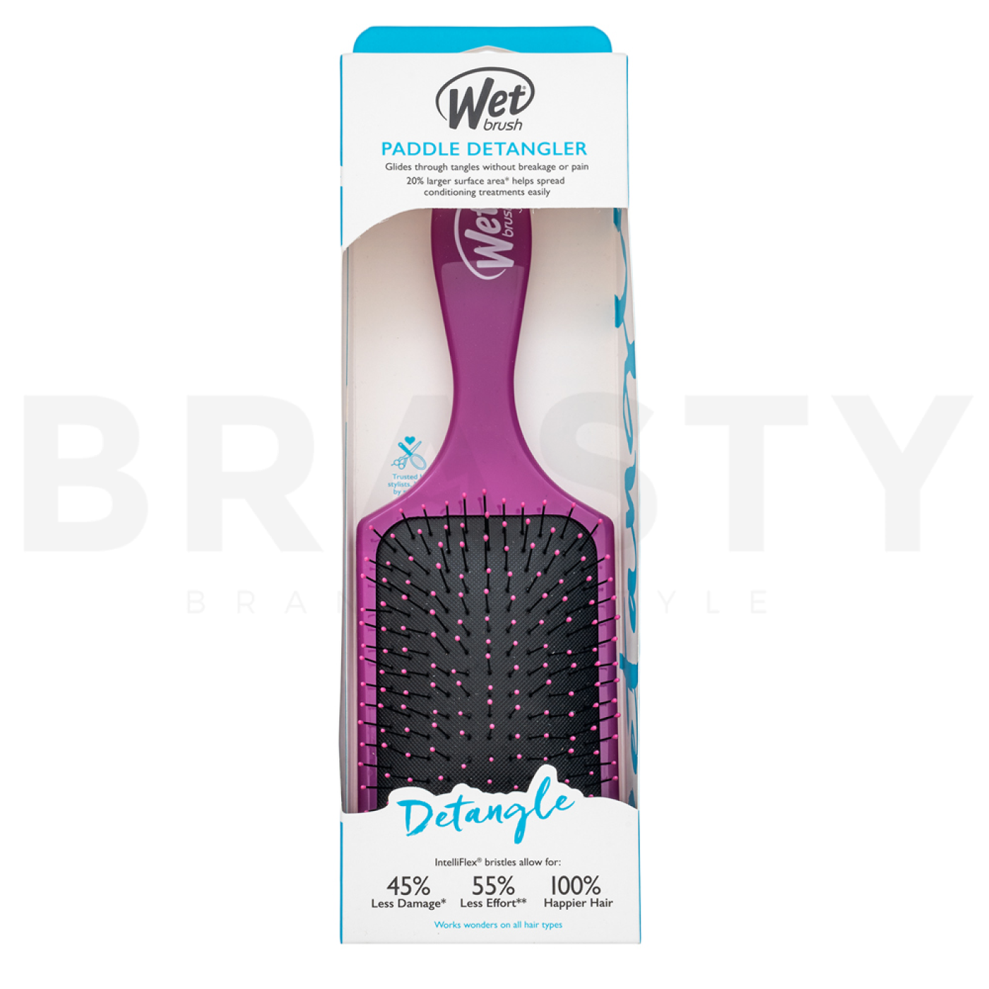 Wet Brush Paddle Detangler Purple kartáč na vlasy je revoluční nástroj v péči o vlasy, který přináší snadné a bezbolestné rozčesávání. Tento kartáč je navržen tak, aby minimalizoval lámání a poškození vlasů, což z něj činí ideální volbu pro každodenní použití. Díky své unikátní konstrukci a ergonomickému designu poskytuje pohodlné držení a efektivní rozčesávání, a to i u těch nejzamotanějších vlasů.
